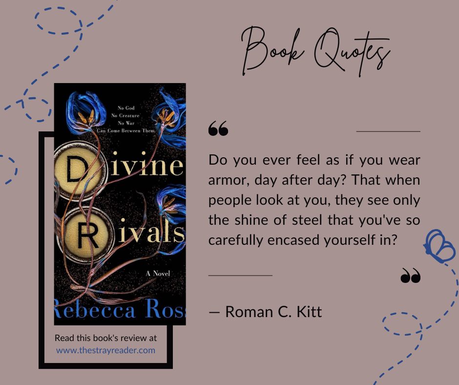 Quote: “Do you ever feel as if you wear armor, day after day? That when people look at you, they see only the shine of steel that you’ve so carefully encased yourself in?” – Roman C. Kitt from the book ‘Divine Rivals’ by Rebecca Ross